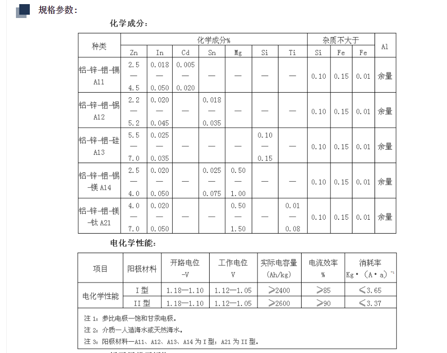 我公司生產(chǎn)的鋁合金犧牲陽極采用優(yōu)良的原材料(鋁陽極原料純度不低于90%)多重質檢工藝(雜質質檢、金相顯微分析、全套化學分析),